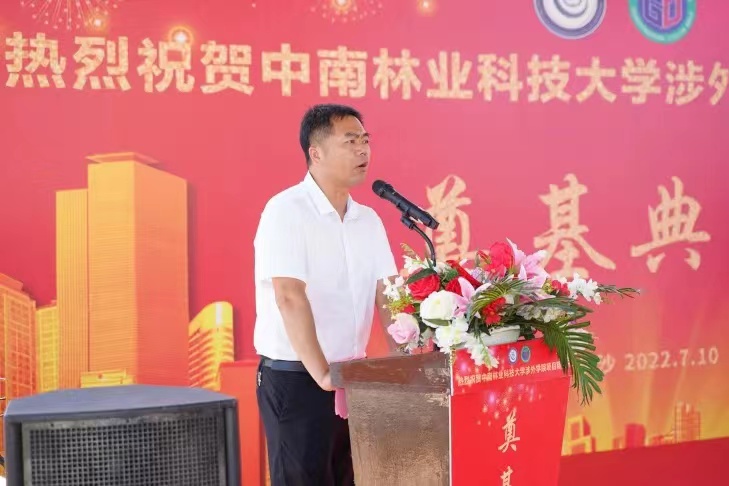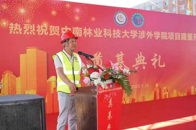 隨后由中南林業(yè)科技大學涉外學院總工-周海斌為項目開工致辭